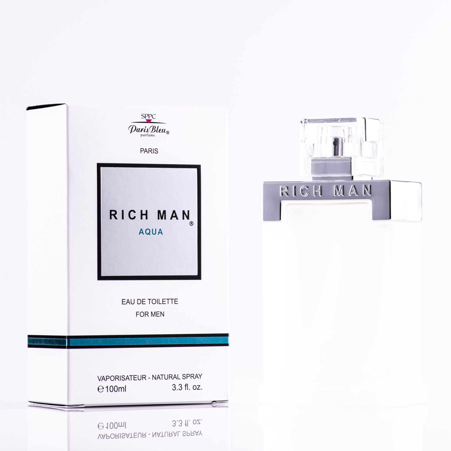 Rich Man Aqua by Paris Bleu Parfums is a woody aquatic fragrance for men. A bright opening of pineapple and pink pepper offers a bold introduction for its light aquatic heart. Coming to rest upon a robust woody base, Rich Man Aqua is an energetic composition sure to delight and refresh.